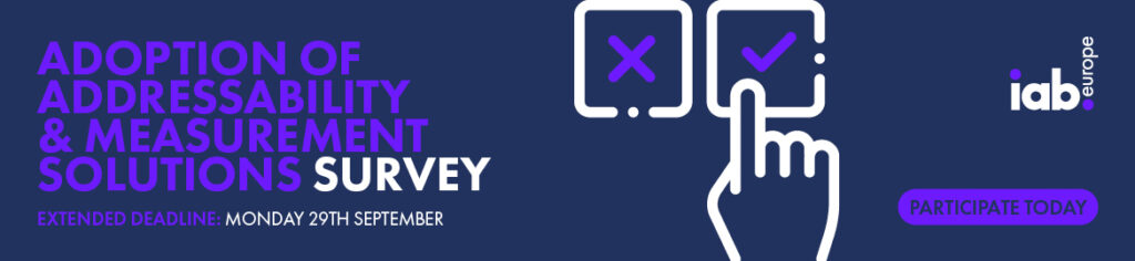 Developed by our Addressability & Measurement Working Group, this short survey has been designed to understand how addressability and measurement solutions are currently being adopted in Europe. We’re seeking input from advertisers, agencies, publishers, and technology providers to capture a clear picture of: