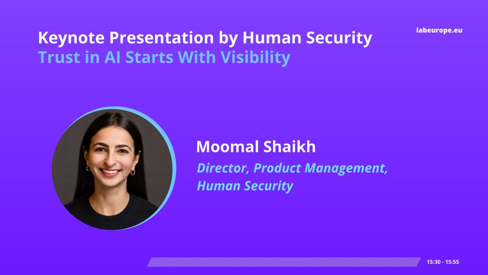 Next, Human Security took the stage with a keynote on “Trust in AI Starts With Visibility,” presented by Moomal Shaikh, Director, Product Management, including a live demo of their approach in practice.