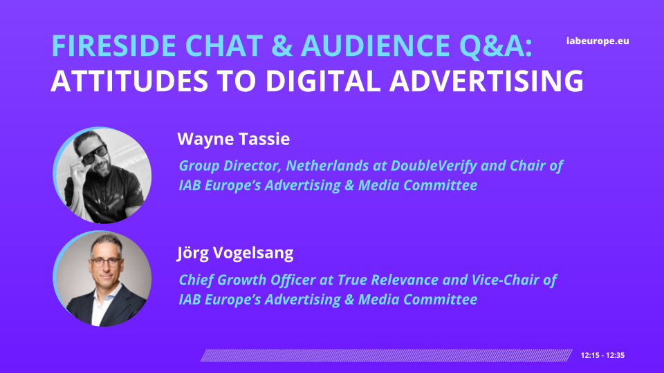 This was followed by a fireside chat featuring Wayne Tassie, Group Director, Netherlands at DoubleVerify and Chair of IAB Europe’s Advertising & Media Committee, and Jörg Vogelsang, Chief Growth Officer at True Relevance and Vice-Chair of IAB Europe’s Advertising & Media Committee.