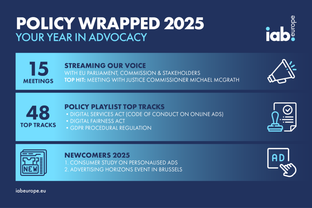 Our top tracks included proactive engagement on the Digital Services Act, particularly on a potential code of conduct on online ads, the Digital Fairness Act, and GDPR procedural regulation, ensuring the voice of the digital advertising industry is heard.