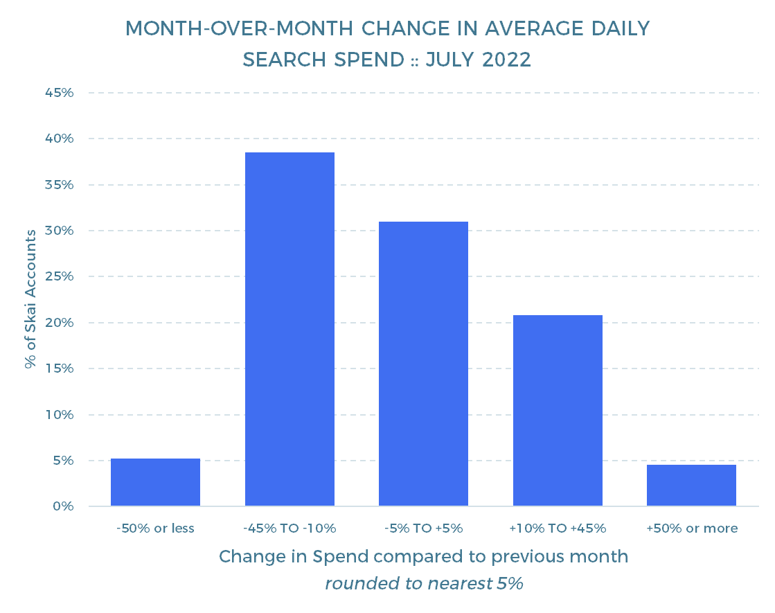 Methodology: For these benchmarks, only Skai™ accounts with spend above a minimum threshold for the previous three months are included. As of April 2022, spending benchmarks use average daily spend to control for longer and shorter months. Please note that the selection criteria used here are different from the Skai™ Quarterly Trends Report, which can sometimes lead to different results from the two analyses.