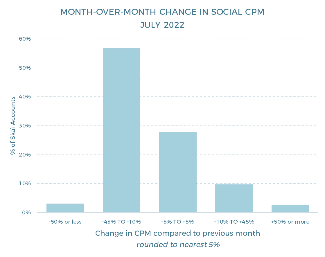 Overall, the average cost of a thousand impressions in social advertising decreased 7% from June to July.